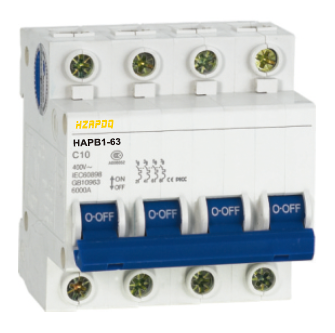 - Product description: HAPB1系列高分?jǐn)嘈⌒蛿嗦菲骶哂薪Y(jié)構(gòu)先進(jìn)、性能可靠、分?jǐn)嗄芰?qiáng)、外型美觀小巧等特點(diǎn),殼體和三部件采用耐沖擊、高阻燃材料構(gòu)成。適用于交流50Hz或60Hz、額定工作電壓為400V及以下、額定電流6A至63A的場所。主要用于辦公樓、住宅和類似的建筑物的照明、配電線路及設(shè)備的過載、短路保護(hù),也可以在正常情況下,作為線路不頻繁的轉(zhuǎn)換之用。產(chǎn)品符合IEC60898 和GB10963等標(biāo)準(zhǔn)的要求。
